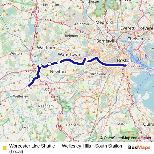 Click here to view the nearest Worcester Line Shuttle - Wellesley Hills - South Station (Local) bus stop.