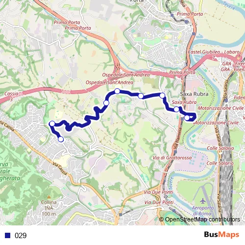The first stop of the 029 bus route is Stazione Saxa Rubra and the last stop is L.Go Sperlonga. 029 is operational during everyday.