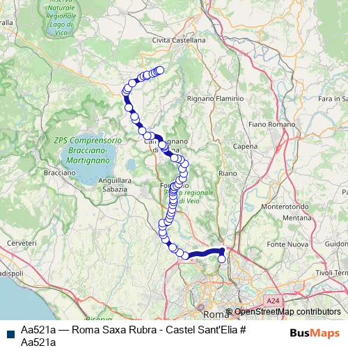 Via Carlo Emery - Via Cassia - Via Formellese - Via Formellese Sud - Via Roma - Piazza Donato Palmieri - Via Formellese Nord - Via Formellese - Via Formellese Nord - SP10a - Via San Sebastiano - Via F. Cavallotti - Via Pietro Gobetti - Via del Pavone - Via Cassia - Via delle Vigne Nuove - Via Cassia - Piazza Antonio Varisco - Strada Regionale Nepesina - Via Enrico Galvaligi - Via Argine Secchia Bondanello - Strada Provinciale Castel Sant'Elia - Via Roma - Via Umberto I