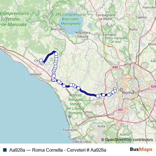 Click here to view the nearest Aa928a - Roma Cornelia - Cerveteri # Aa928a bus stop.