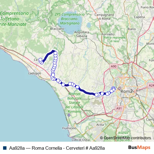 Click here to view the nearest Aa928a - Roma Cornelia - Cerveteri # Aa928a bus stop.