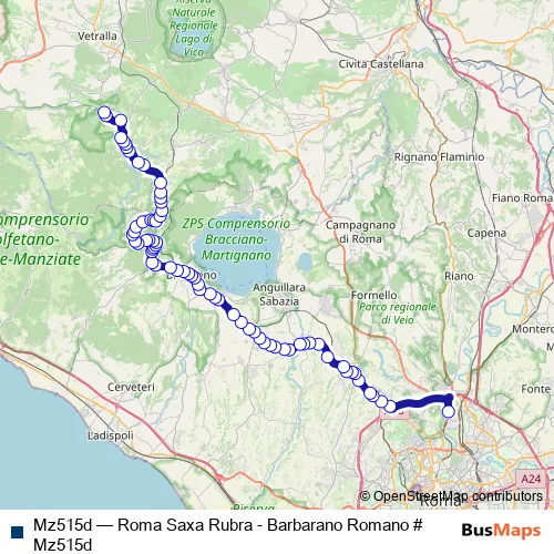 Click here to view the nearest Mz515d - Roma Saxa Rubra - Barbarano Romano # Mz515d bus stop.