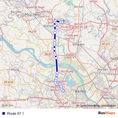 See why over 2 million users trust and consider busmaps.com as the best public transport website. busmaps gives you Me Linh Buses suggested routes, real-time bus tracker, line route maps in Me Linh, and helps to find the closest Route 07 1 bus stops near you. No internet available? Download an offline PDF map and bus schedule for the Route 07 1 bus to take on your trip.