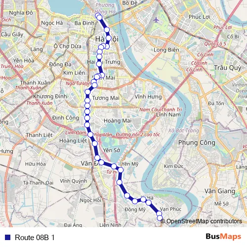 See why over 2 million users trust and consider busmaps.com as the best public transport website. busmaps gives you Hanoi Buses suggested routes, real-time bus tracker, line route maps in Hanoi, and helps to find the closest Route 08B 1 bus stops near you. No internet available? Download an offline PDF map and bus schedule for the Route 08B 1 bus to take on your trip.