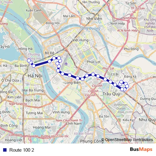 See why over 2 million users trust and consider busmaps.com as the best public transport website. busmaps gives you Hanoi Buses suggested routes, real-time bus tracker, line route maps in Hanoi, and helps to find the closest Route 100 2 bus stops near you. No internet available? Download an offline PDF map and bus schedule for the Route 100 2 bus to take on your trip.