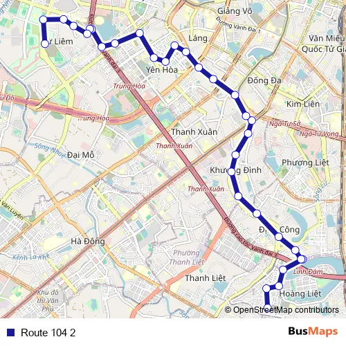 See why over 2 million users trust and consider busmaps.com as the best public transport website. busmaps gives you Cau Giay Buses suggested routes, real-time bus tracker, line route maps in Cau Giay, and helps to find the closest Route 104 2 bus stops near you. No internet available? Download an offline PDF map and bus schedule for the Route 104 2 bus to take on your trip.