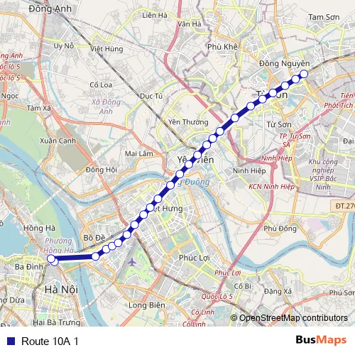 See why over 2 million users trust and consider busmaps.com as the best public transport website. busmaps gives you Hanoi Buses suggested routes, real-time bus tracker, line route maps in Hanoi, and helps to find the closest Route 10A 1 bus stops near you. No internet available? Download an offline PDF map and bus schedule for the Route 10A 1 bus to take on your trip.