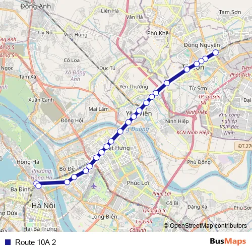 See why over 2 million users trust and consider busmaps.com as the best public transport website. busmaps gives you Hanoi Buses suggested routes, real-time bus tracker, line route maps in Hanoi, and helps to find the closest Route 10A 2 bus stops near you. No internet available? Download an offline PDF map and bus schedule for the Route 10A 2 bus to take on your trip.