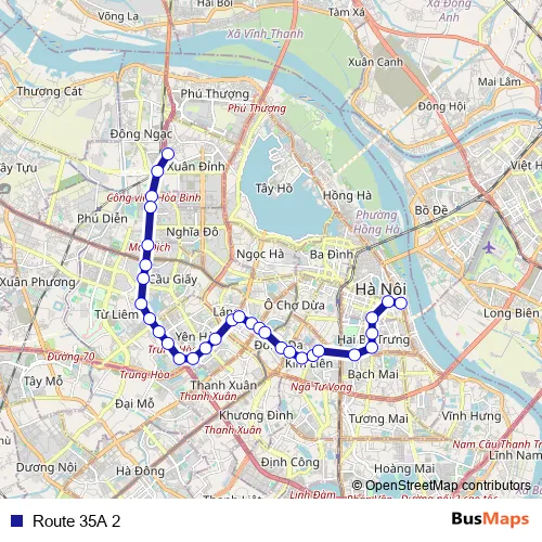 See why over 2 million users trust and consider busmaps.com as the best public transport website. busmaps gives you Cau Giay Buses suggested routes, real-time bus tracker, line route maps in Cau Giay, and helps to find the closest Route 35A 2 bus stops near you. No internet available? Download an offline PDF map and bus schedule for the Route 35A 2 bus to take on your trip.