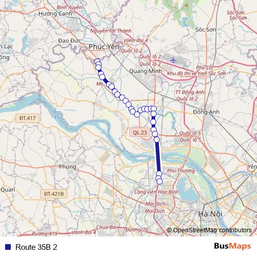 See why over 2 million users trust and consider busmaps.com as the best public transport website. busmaps gives you Me Linh Buses suggested routes, real-time bus tracker, line route maps in Me Linh, and helps to find the closest Route 35B 2 bus stops near you. No internet available? Download an offline PDF map and bus schedule for the Route 35B 2 bus to take on your trip.