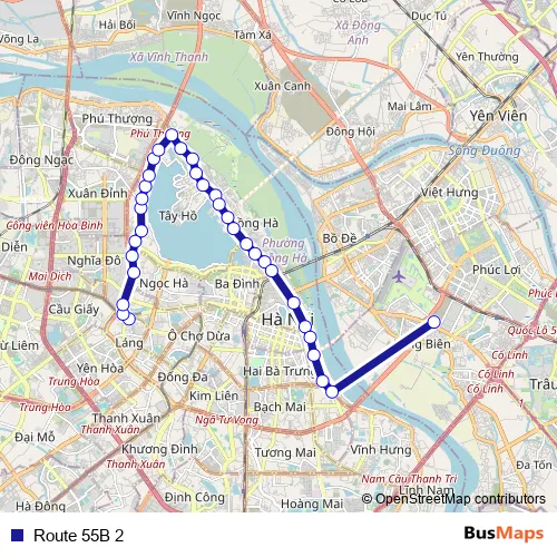 See why over 2 million users trust and consider busmaps.com as the best public transport website. busmaps gives you Hanoi Buses suggested routes, real-time bus tracker, line route maps in Hanoi, and helps to find the closest Route 55B 2 bus stops near you. No internet available? Download an offline PDF map and bus schedule for the Route 55B 2 bus to take on your trip.