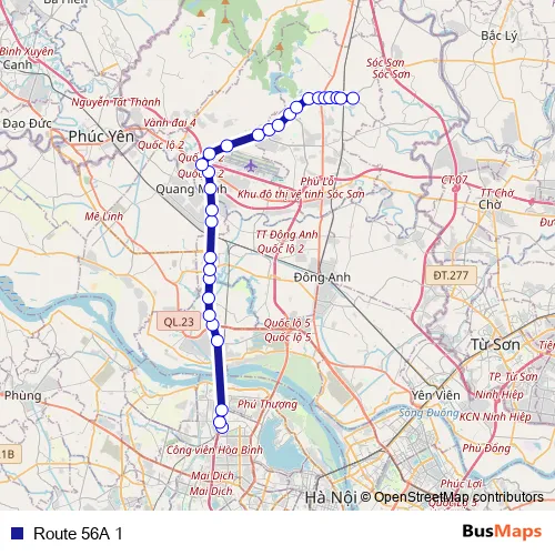 See why over 2 million users trust and consider busmaps.com as the best public transport website. busmaps gives you Soc Son Buses suggested routes, real-time bus tracker, line route maps in Soc Son, and helps to find the closest Route 56A 1 bus stops near you. No internet available? Download an offline PDF map and bus schedule for the Route 56A 1 bus to take on your trip.