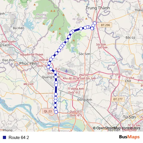 See why over 2 million users trust and consider busmaps.com as the best public transport website. busmaps gives you Soc Son Buses suggested routes, real-time bus tracker, line route maps in Soc Son, and helps to find the closest Route 64 2 bus stops near you. No internet available? Download an offline PDF map and bus schedule for the Route 64 2 bus to take on your trip.