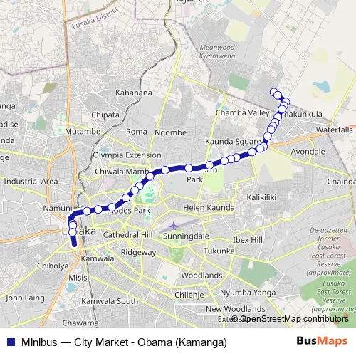 The first stop of the Minibus bus route is Obama (Kamanga) and the last stop is City Market - Chiparamba Rd. Minibus (City Market - Obama (Kamanga)) is operational during everyday.