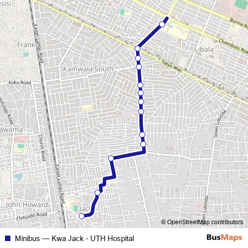 The first stop of the Minibus bus route is Libala Primary School and the last stop is Kwa Jack. Minibus (Kwa Jack - UTH Hospital) is operational during everyday.