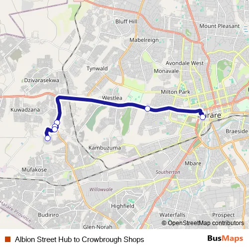 Albion Street Hub to Crowbrough Shops (Harare Buses)