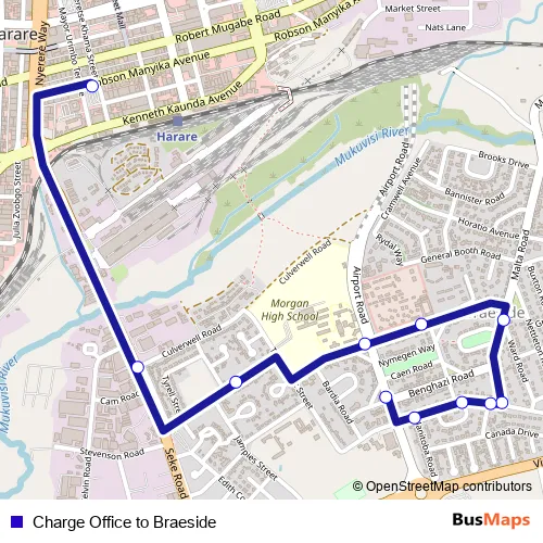 See why over 2 million users trust and consider busmaps.com as the best public transport website. busmaps gives you Harare Buses suggested routes, real-time bus tracker, line route maps in Harare, and helps to find the closest Charge Office to Braeside bus stops near you. No internet available? Download an offline PDF map and bus schedule for the Charge Office to Braeside bus to take on your trip.