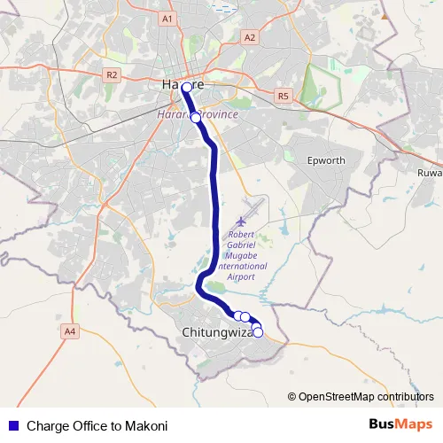 See why over 2 million users trust and consider busmaps.com as the best public transport website. busmaps gives you Harare Buses suggested routes, real-time bus tracker, line route maps in Harare, and helps to find the closest Charge Office to Makoni bus stops near you. No internet available? Download an offline PDF map and bus schedule for the Charge Office to Makoni bus to take on your trip.