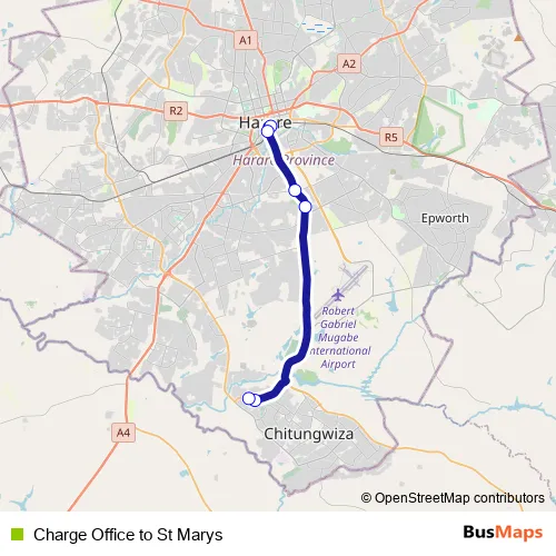 See why over 2 million users trust and consider busmaps.com as the best public transport website. busmaps gives you Harare Buses suggested routes, real-time bus tracker, line route maps in Harare, and helps to find the closest Charge Office to St Marys bus stops near you. No internet available? Download an offline PDF map and bus schedule for the Charge Office to St Marys bus to take on your trip.