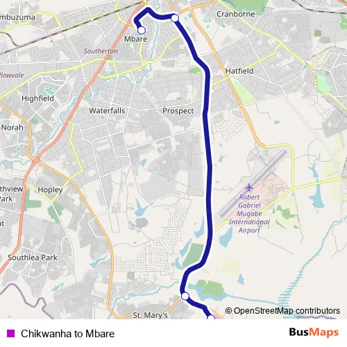 See why over 2 million users trust and consider busmaps.com as the best public transport website. busmaps gives you Harare Buses suggested routes, real-time bus tracker, line route maps in Harare, and helps to find the closest Chikwanha to Mbare bus stops near you. No internet available? Download an offline PDF map and bus schedule for the Chikwanha to Mbare bus to take on your trip.