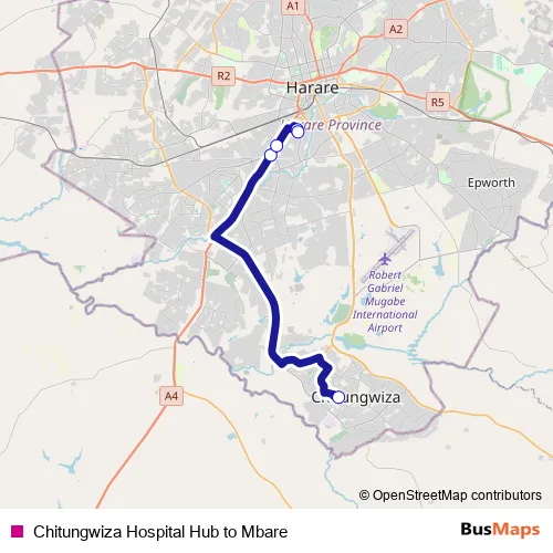 Additional information: Chitungwiza Hospital Hub to Mbare has 5 stops and the total trip duration
