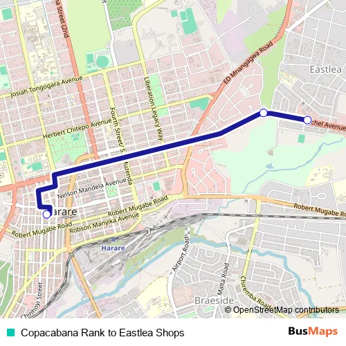 Copacabana Rank to Eastlea Shops (Harare Buses)
