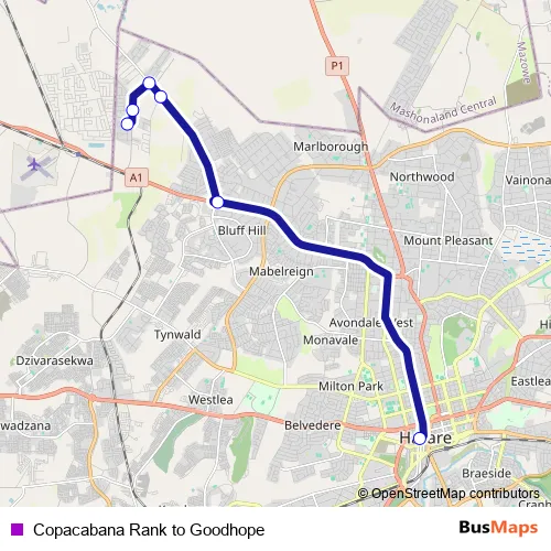 See why over 2 million users trust and consider busmaps.com as the best public transport website. busmaps gives you Harare Buses suggested routes, real-time bus tracker, line route maps in Harare, and helps to find the closest Copacabana Rank to Goodhope bus stops near you. No internet available? Download an offline PDF map and bus schedule for the Copacabana Rank to Goodhope bus to take on your trip.