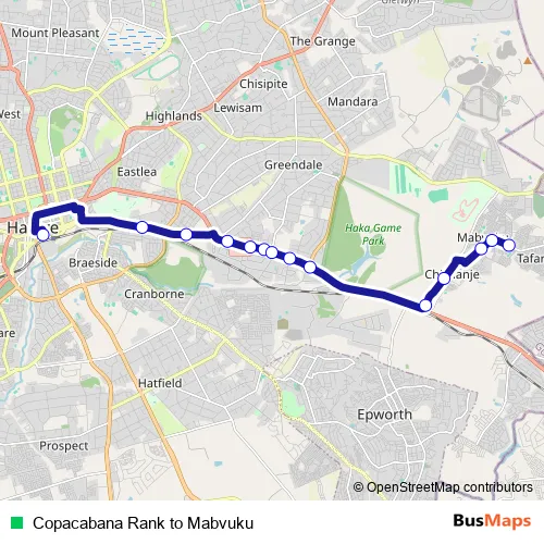 Additional information: Copacabana Rank to Mabvuku has 14 stops and the total trip duration
