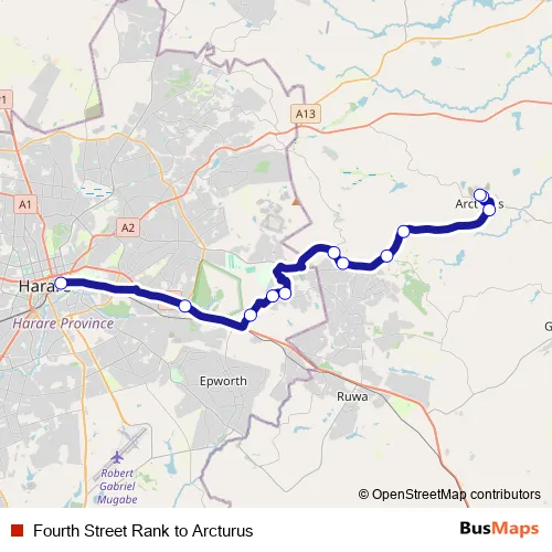See why over 2 million users trust and consider busmaps.com as the best public transport website. busmaps gives you Harare Buses suggested routes, real-time bus tracker, line route maps in Harare, and helps to find the closest Fourth Street Rank to Arcturus bus stops near you. No internet available? Download an offline PDF map and bus schedule for the Fourth Street Rank to Arcturus bus to take on your trip.