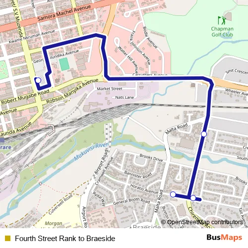 See why over 2 million users trust and consider busmaps.com as the best public transport website. busmaps gives you Harare Buses suggested routes, real-time bus tracker, line route maps in Harare, and helps to find the closest Fourth Street Rank to Braeside bus stops near you. No internet available? Download an offline PDF map and bus schedule for the Fourth Street Rank to Braeside bus to take on your trip.