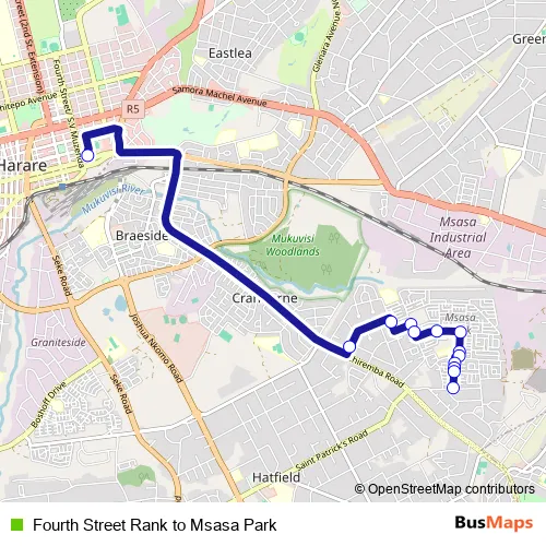 See why over 2 million users trust and consider busmaps.com as the best public transport website. busmaps gives you Harare Buses suggested routes, real-time bus tracker, line route maps in Harare, and helps to find the closest Fourth Street Rank to Msasa Park bus stops near you. No internet available? Download an offline PDF map and bus schedule for the Fourth Street Rank to Msasa Park bus to take on your trip.