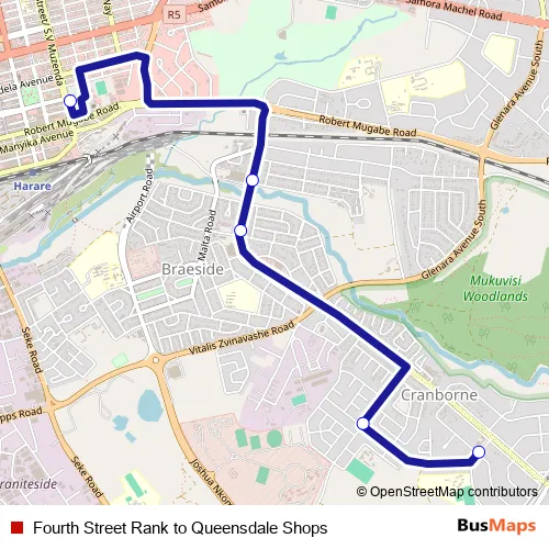 Fourth Street Rank to Queensdale Shops (Harare Buses)