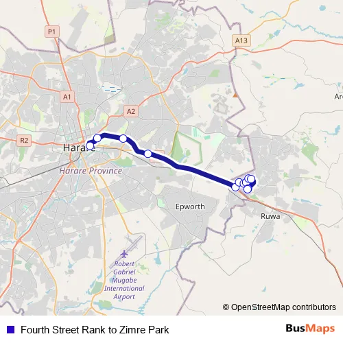 See why over 2 million users trust and consider busmaps.com as the best public transport website. busmaps gives you Harare Buses suggested routes, real-time bus tracker, line route maps in Harare, and helps to find the closest Fourth Street Rank to Zimre Park bus stops near you. No internet available? Download an offline PDF map and bus schedule for the Fourth Street Rank to Zimre Park bus to take on your trip.