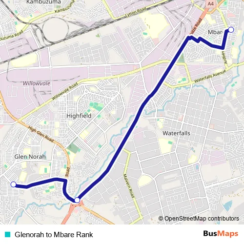 Additional information: Glenorah to Mbare Rank has 3 stops and the total trip duration for this route is approximately 25 minutes.