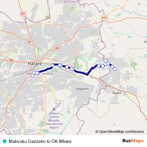 Additional information: Mabvuku Gazzebo to OK Mbare has 16 stops and the total trip duration