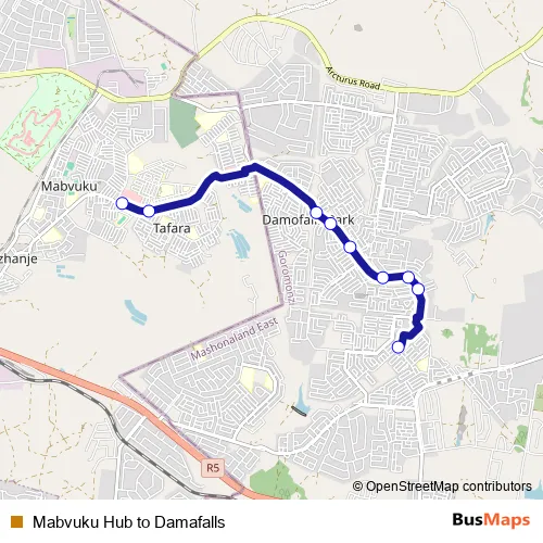 Additional information: Mabvuku Hub to Damafalls has 9 stops and the total trip duration