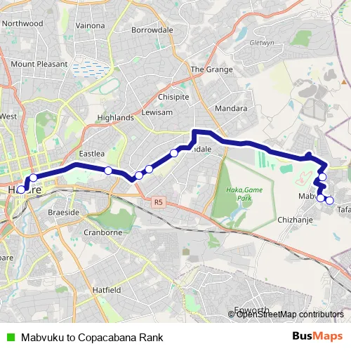 See why over 2 million users trust and consider busmaps.com as the best public transport website. busmaps gives you Harare Buses suggested routes, real-time bus tracker, line route maps in Harare, and helps to find the closest Mabvuku to Copacabana Rank bus stops near you. No internet available? Download an offline PDF map and bus schedule for the Mabvuku to Copacabana Rank bus to take on your trip.