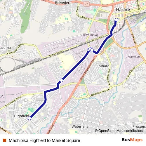 See why over 2 million users trust and consider busmaps.com as the best public transport website. busmaps gives you Harare Buses suggested routes, real-time bus tracker, line route maps in Harare, and helps to find the closest Machipisa Highfield to Market Square bus stops near you. No internet available? Download an offline PDF map and bus schedule for the Machipisa Highfield to Market Square bus to take on your trip.