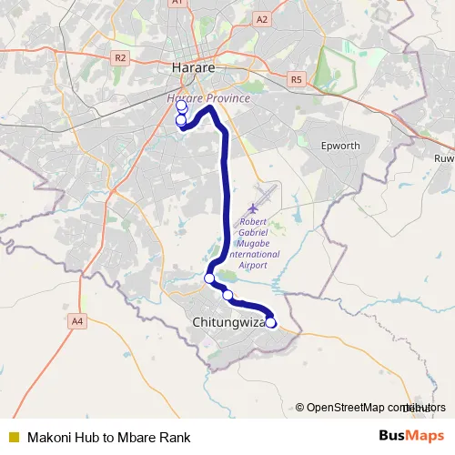 See why over 2 million users trust and consider busmaps.com as the best public transport website. busmaps gives you Harare Buses suggested routes, real-time bus tracker, line route maps in Harare, and helps to find the closest Makoni Hub to Mbare Rank bus stops near you. No internet available? Download an offline PDF map and bus schedule for the Makoni Hub to Mbare Rank bus to take on your trip.