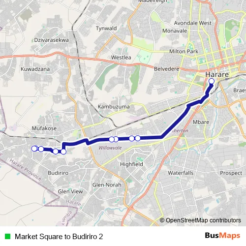 Additional information: Market Square to Budiriro 2 has 10 stops and the total trip duration