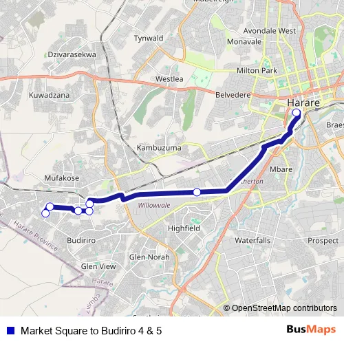 Additional information: Market Square to Budiriro 4 & 5 has 7 stops and the total trip duration