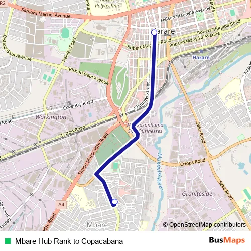 Bus Mbare Hub Rank to Copacabana in Harare: Stops & Timetable