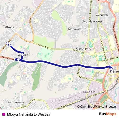 Additional information: Mbuya Nehanda to Westlea has 5 stops and the total trip duration