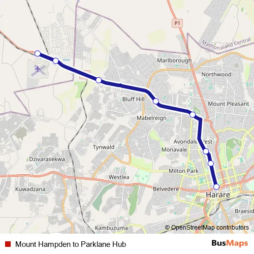 See why over 2 million users trust and consider busmaps.com as the best public transport website. busmaps gives you Harare Buses suggested routes, real-time bus tracker, line route maps in Harare, and helps to find the closest Mount Hampden to Parklane Hub bus stops near you. No internet available? Download an offline PDF map and bus schedule for the Mount Hampden to Parklane Hub bus to take on your trip.