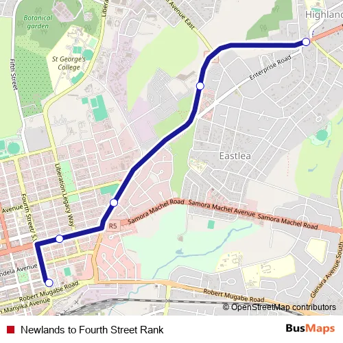 See why over 2 million users trust and consider busmaps.com as the best public transport website. busmaps gives you Harare Buses suggested routes, real-time bus tracker, line route maps in Harare, and helps to find the closest Newlands to Fourth Street Rank bus stops near you. No internet available? Download an offline PDF map and bus schedule for the Newlands to Fourth Street Rank bus to take on your trip.