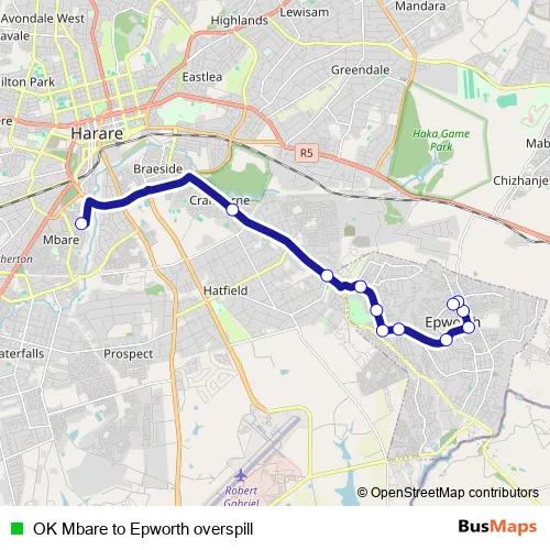 See why over 2 million users trust and consider busmaps.com as the best public transport website. busmaps gives you Harare Buses suggested routes, real-time bus tracker, line route maps in Harare, and helps to find the closest OK Mbare to Epworth overspill bus stops near you. No internet available? Download an offline PDF map and bus schedule for the OK Mbare to Epworth overspill bus to take on your trip.