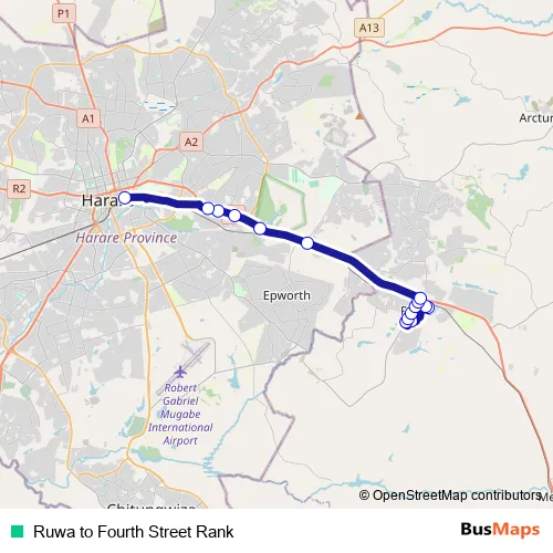 See why over 2 million users trust and consider busmaps.com as the best public transport website. busmaps gives you Harare Buses suggested routes, real-time bus tracker, line route maps in Harare, and helps to find the closest Ruwa to Fourth Street Rank bus stops near you. No internet available? Download an offline PDF map and bus schedule for the Ruwa to Fourth Street Rank bus to take on your trip.
