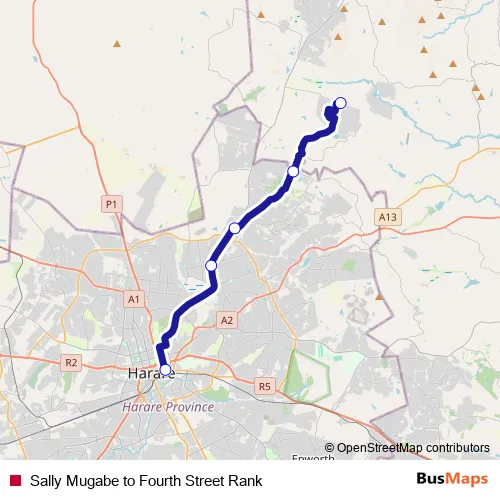 See why over 2 million users trust and consider busmaps.com as the best public transport website. busmaps gives you Harare Buses suggested routes, real-time bus tracker, line route maps in Harare, and helps to find the closest Sally Mugabe to Fourth Street Rank bus stops near you. No internet available? Download an offline PDF map and bus schedule for the Sally Mugabe to Fourth Street Rank bus to take on your trip.