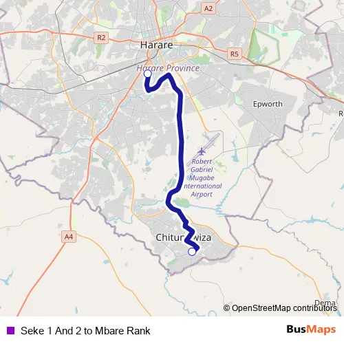 See why over 2 million users trust and consider busmaps.com as the best public transport website. busmaps gives you Harare Buses suggested routes, real-time bus tracker, line route maps in Harare, and helps to find the closest Seke 1 And 2 to Mbare Rank bus stops near you. No internet available? Download an offline PDF map and bus schedule for the Seke 1 And 2 to Mbare Rank bus to take on your trip.