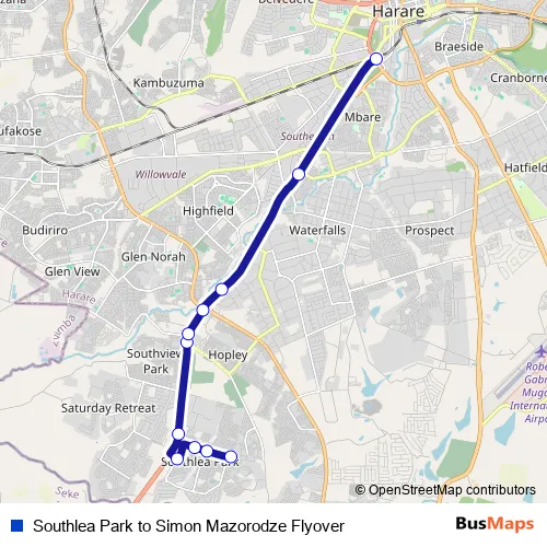 Additional information: Southlea Park to Simon Mazorodze Flyover has 11 stops and the total trip duration